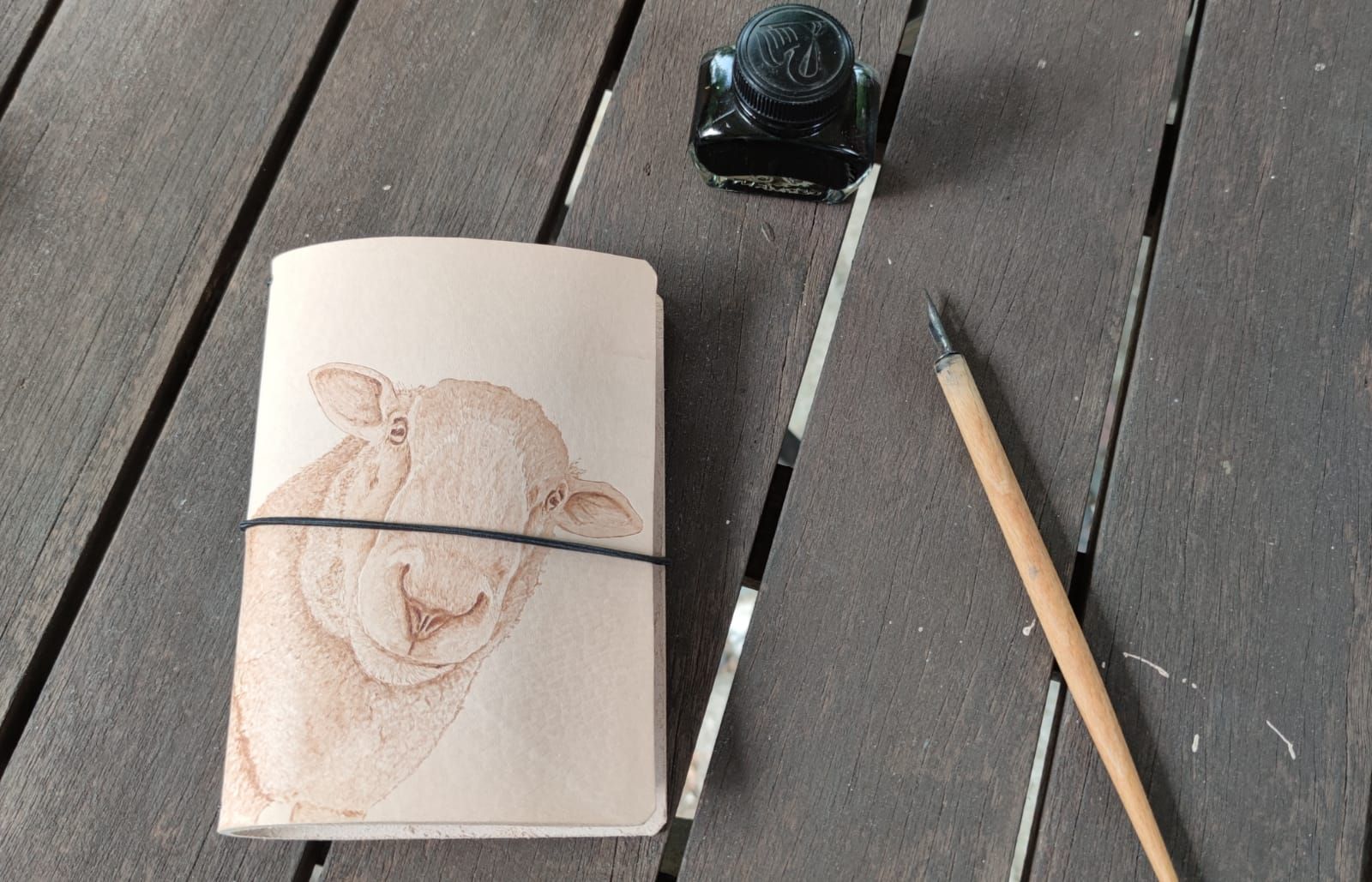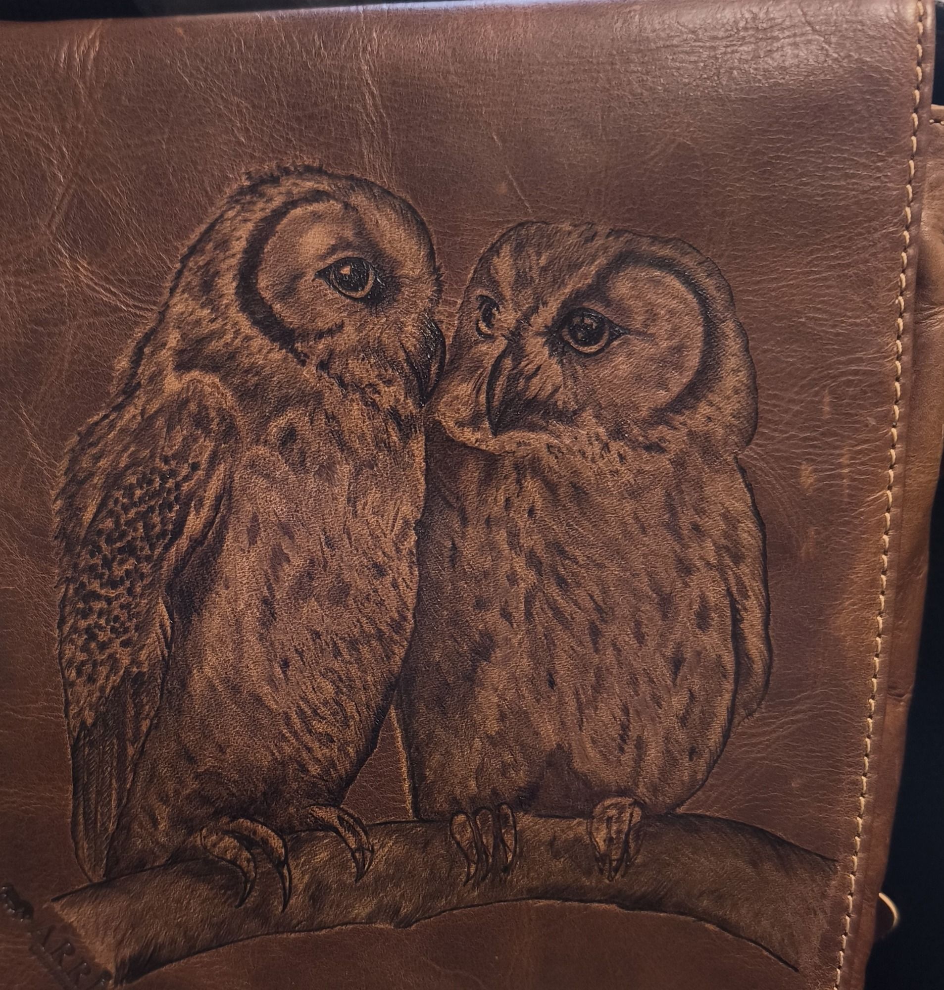 Bekannt ist die Brandmalerei vor allem auf Holz. Zum Brennen auf Leder bin ich gekommen, weil ich einen Lederumschlag für mein Notizbuch verzieren wollte und mich dann die Experimentierfreude gepackt hat.