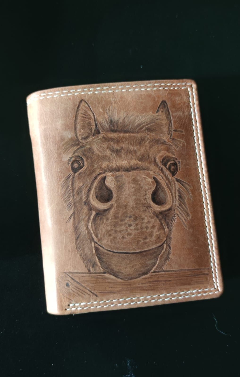 Brandmalerei ist eine Technik, bei der mit einer heißen Metallspitze Motive auf Leder und Holz „gezeichnet“ werden.